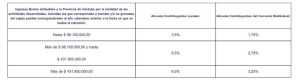El cuadro siguiente establece las alícuotas según los ingresos brutos atribuibles a la Provincia de Córdoba durante el año calendario pasado:
